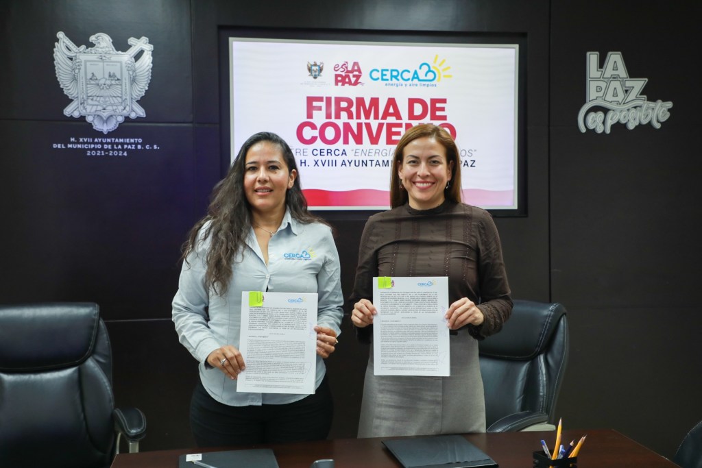 Con el propósito de fomentar un entorno más saludable y sustentable, la Presidenta Municipal de La Paz, Milena Quiroga Romero firmó un convenio de colaboración con el Centro de Energía Renovable y Calidad Ambiental(CERCA), encabezado por Jaqueline Valenzuela, para implementar acciones conjuntas que mejoren la calidad del aire.