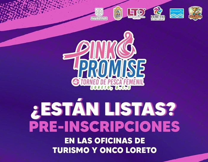 Con la finalidad que ninguna aficionada a la pesca deportiva se quede fuera del prestigiado torneo femenil con causa “Pink Promise”, Badrolilia Lucero Orozco directora de turismo del XI ayuntamiento de Loreto, recordó que hoy es el último día para inscribir a su equipo de pescadoras con tarifa preferencial de 5000 pesos.
