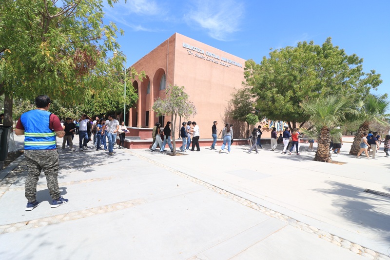 Detalló que en punto de las 10:30 horas sonaron las alarmas y en ese momento procedieron a evacuar a 47 hombres y 76 mujeres que se encontraban en ese momento en la Biblioteca, quienes fueron dirigidos a las salidas de emergencia de manera ordenada, para posteriormente ubicarles en los puntos de encuentro seguro.