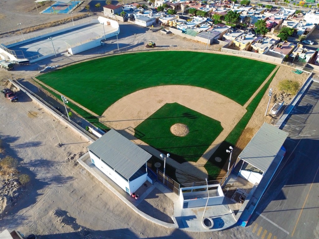 La alcaldesa Edith Aguilar informó que este espacio deportivo ha sido rehabilitado de forma integral, incorporando un patio exterior, dogouts para equipos locales y visitantes, muro perimetral para protección ante escurrimientos pluviales, trabajos de terracería, aplicación de arcilla especializada en el área de juego, así como la instalación de pasto deportivo artificial, lo que lo convierte en uno de los espacios mejor acondicionados de la región para el desarrollo del béisbol infantil y el sóftbol.