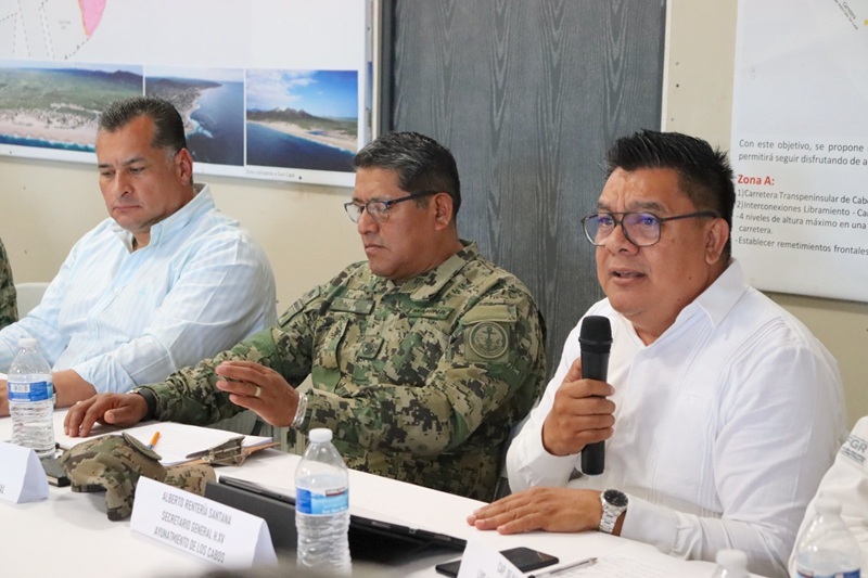 Durante la Mesa de Seguridad, autoridades de los tres niveles de gobierno reafirmaron su compromiso con la paz, tranquilidad y seguridad del municipio de Los Cabos, en esta ocasión se contó con la participación del secretario municipal Alberto Rentería Santana en representación del alcalde de la XV Administración el Arq. Christian Agúndez Gómez, quien la coordinación interisntitucional, donde prevalece la voluntad, el respeto y el compromiso con la ciudadanía por encima de jerarquías.