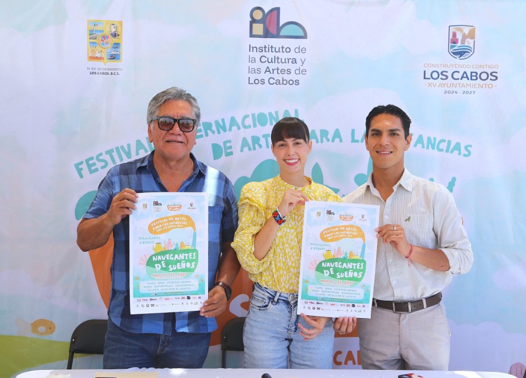 En rueda de prensa, la directora general del Instituto de la Cultura y las Artes de Los Cabos (ICA), Tanya Covarrubias Martínez, junto al séptimo regidor Alí Flores Ramírez y el coordinador de la Casa de la Cultura “Nieves Trasviña den Ceseña” de Cabo San Lucas, Héctor Guerrero Santiesteban anunciaron la apertura de los trabajos relativos al Festival Internacional de Artes para las Infancias (FAPI) Los Cabos 2025 “Navegantes de Sueños”, que se desarrollará del 21 al 25 de mayo.