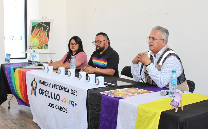 En representación del presidente municipal, arquitecto Christian Agúndez Gómez, el jefe de Gabinete, Guillermo Sánchez Flores participó en la rueda de prensa realizada en la Galería de la Casa de la Cultura Profa. Nieves Trasviña de Ceseña, en Cabo San Lucas, para dar a conocer los detalles de la próxima Marcha Histórica del Orgullo LGBTQ+ 2025.