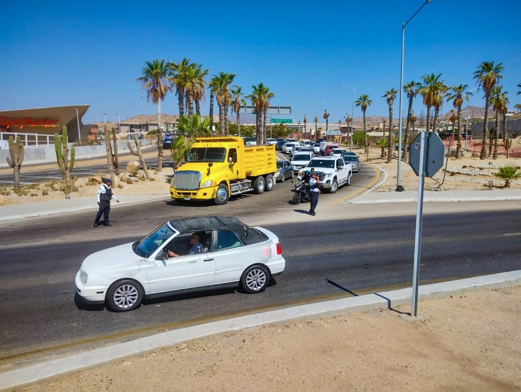 Con el objetivo de garantizar una movilidad segura y eficiente para la ciudadanía, el XV Ayuntamiento de Los Cabos, a través dela Dirección General de Seguridad Pública, Policía Preventiva y Tránsito Municipal implementó un operativo especial de tránsito en la zona de la glorieta Fonatur, en San José del Cabo. Esta medida responde al inicio de los trabajos del paso a desnivel, recientemente inaugurado por la presidenta de México, doctora Claudia Sheinbaum Pardo.