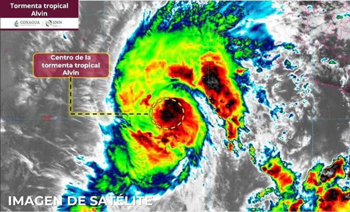 De acuerdo al boletín de la Comisión Nacional del Agua, hasta el jueves a las 03:00 de la tarde, la tormenta tropical Alvin continuaba su desplazamiento paralelo a las costas del Pacífico central mexicano, por lo que permanece bajo vigilancia activa por parte de las autoridades.