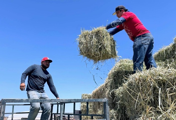Durante una gira de trabajo por el municipio de Comondú, el titular de la Secretaría de Pesca, Acuacultura y Desarrollo Agropecuario (SEPADA), José Alfredo Bermúdez Beltrán encabezó la entrega de más de 2 mil pacas de sorgo forrajero, las cuales fueron sembradas en cinco hectáreas, propiedad del productor Raúl Constantino, en Ley Federal de Aguas V, como parte del Plan Estratégico de Atención a la Sequía.