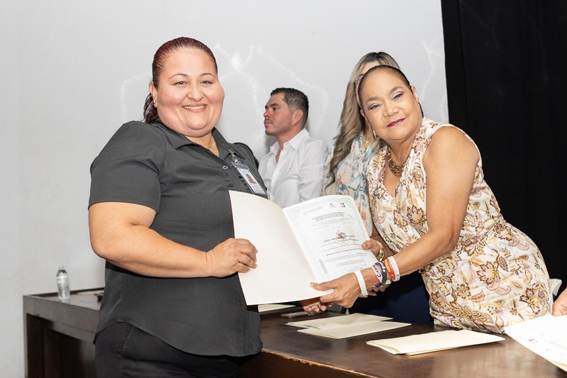 Durante su mensaje, la directora de Recursos Humanos reconoció el compromiso del personal que concluyó satisfactoriamente esta capacitación: “agradezco su compromiso, compañeros y compañeras; son parte fundamental de esta administración. Tenemos que demostrar este interés por la inclusión, no solo decirlo, sino hacerlo con hechos”, expresó.