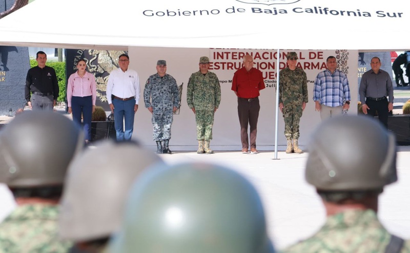 En conmemoración del Día Internacional de Destrucción de Armas, se llevó a cabo en las instalaciones del 49 Batallón de Infantería del Ejército Mexicano la destrucción de armas de fuego aseguradas durante diversos operativos realizados por las autoridades de los tres órdenes de gobierno en Baja California Sur.