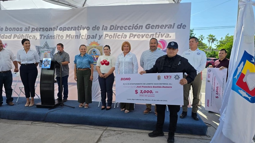 En un acto de dignificación laboral y justicia social, este 16 de julio, la presidenta municipal de Loreto Paz del Alma Ochoa Amador, encabezo la ceremonia de reconocimiento y entrega de un bono especial de 3,000 pesos, a 71 elementos operativos de la dirección de seguridad pública y tránsito municipal.