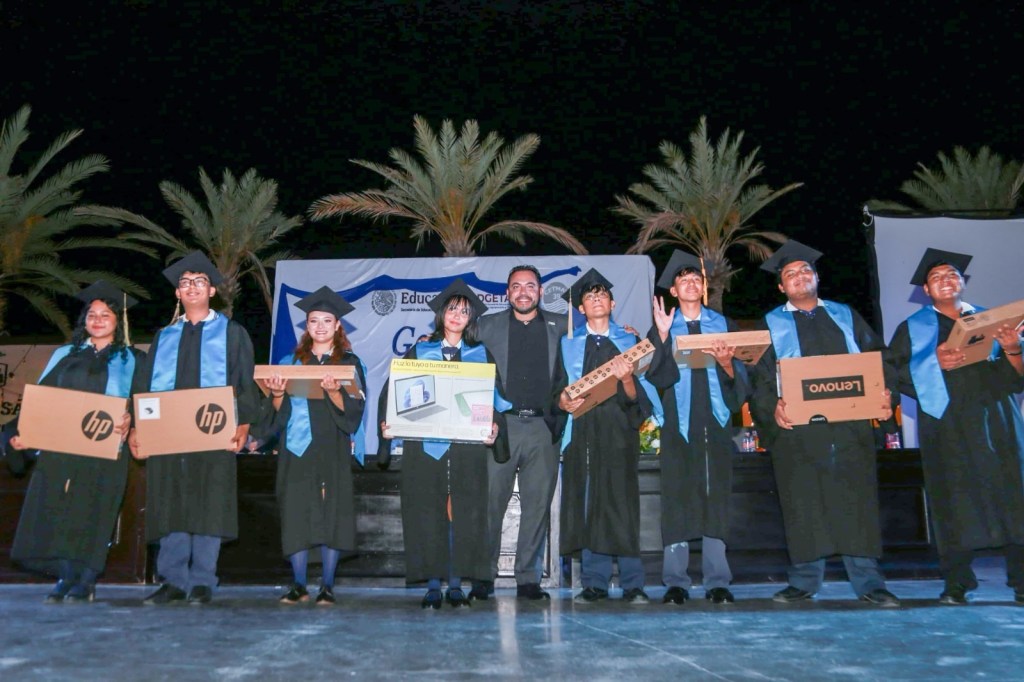 Cabe recalcar, que, en un gesto de reconocimiento a la excelencia académica, el presidente municipal hizo entrega de equipos de cómputo a estudiantes que obtuvieron los mejores promedios durante su proceso formativo.