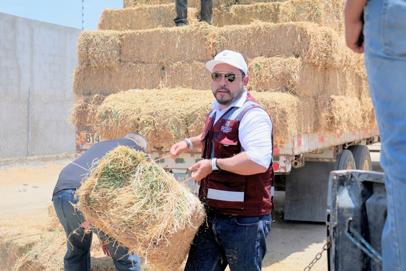 Como parte del compromiso con el campo y sus productores, el Ejecutivo Municipal, encabezó la entrega de apoyos al sector ganadero del municipio, con el propósito de mitigar los efectos de la sequía que actualmente impacta a la región; durante el acto, se distribuyeron 2 mil pacas de alfalfa y 50 toneladas de concentrado ganadero, equivalentes a 2 mil sacos de forraje, como un respaldo tangible al esfuerzo diario de las familias que viven y trabajan en el medio rural.