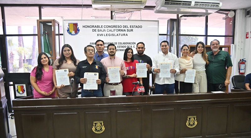 El presidente de la Junta de Gobierno y Coordinación Política, Eduardo Van Wormer Castro y el Oficial Mayor Adrián Chávez Ruiz firmaron convenios con las empresas Consultorio Dental Aero Smile, Tu Polideportivo La Paz, Centro de Rehabilitación CEFYR, Óptica Cortés y la Clínica de Especialidades Médicas este miércoles 06 de agosto, ante el Contralor Interno Michael Hernández Cervantes.