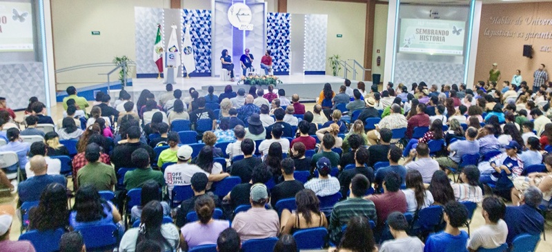 Con la participación de más de 200 asistentes, el Instituto Sudcaliforniano de la Juventud (ISJ), en coordinación con la Universidad Autónoma de Baja California Sur (UABCS), llevó a cabo la conferencia “Sembrando Historia”, en el Poliforo Cultural Universitario, impartida por Paco Ignacio Taibo II, director general del Fondo de Cultura Económica (FCE).