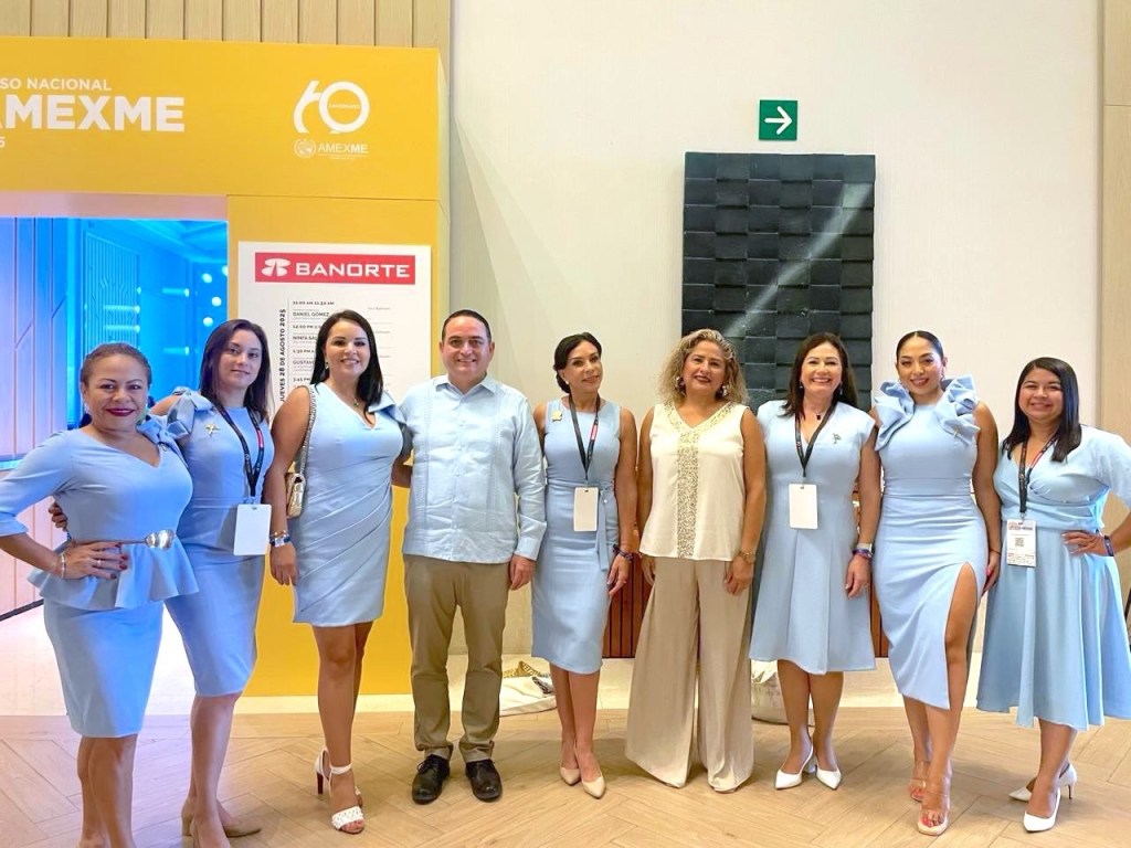 Con la finalidad de fortalecer el desarrollo económico a través de la proyección del destino y en representación del presidente municipal Christian Agúndez; la directora general de Fomento Económico, Abril Urueta Martínez, participó en el Congreso Nacional AMEXME 2025 en Cancún, acompañando a la delegación de empresarias de esta importante organización en nuestro municipio.