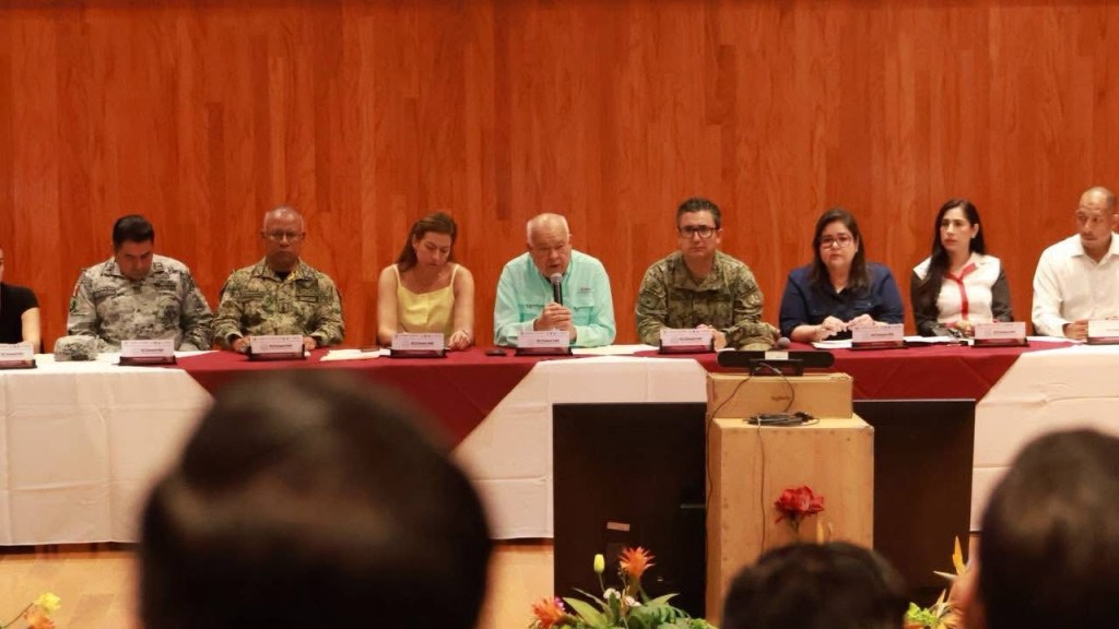 Al encabezar un encuentro ciudadano con integrantes de la Mesa de Seguridad, alcaldesas y alcaldes, servidores públicos federales y representantes de las cámaras empresariales, el gobernador del estado, Víctor Manuel Castro Cosío, destacó el propósito de reconocer el trabajo conjunto y el respaldo solidario de la sociedad sudcaliforniana.