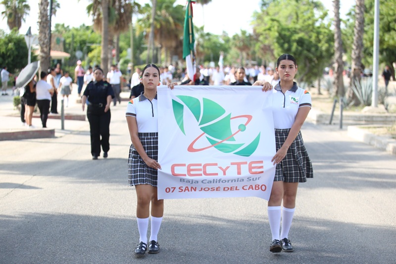 El bulevar Teniente José Antonio Mijares, en el corazón de San José del Cabo, se vistió de orgullo patrio con el paso de los contingentes integrados por la Marina, el Sector Naval, la Guardia Nacional, el Ejército Mexicano, Seguridad Pública Municipal, instituciones educativas y organizaciones sociales. El ritmo marcial de las bandas de guerra y la participación ciudadana dieron realce a un evento lleno de identidad y tradición.