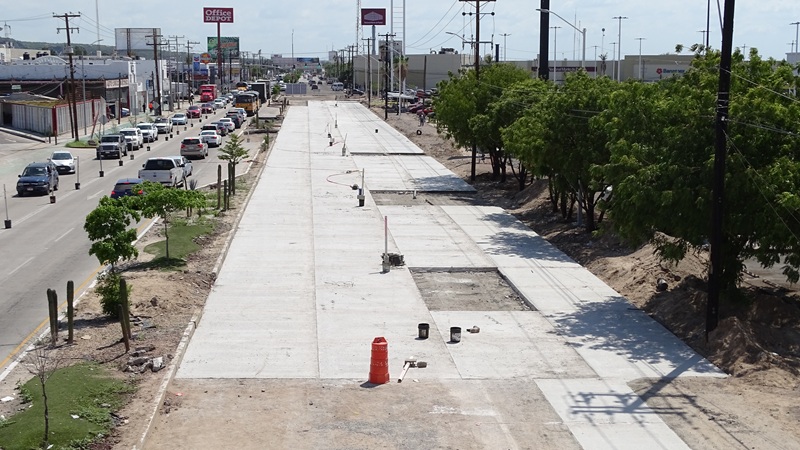Comprometidos con el fortalecimiento de la movilidad, el Gobierno del Estado, a través de la Secretaría de Planeación Urbana, Infraestructura, Movilidad, Medio Ambiente y Recursos Naturales (SEPUIMM), continúa con los trabajos de reconstrucción con concreto hidráulico en el bulevar Forjadores, en el tramo de Colima a Colosio, que actualmente registra un 70 por ciento de avance.