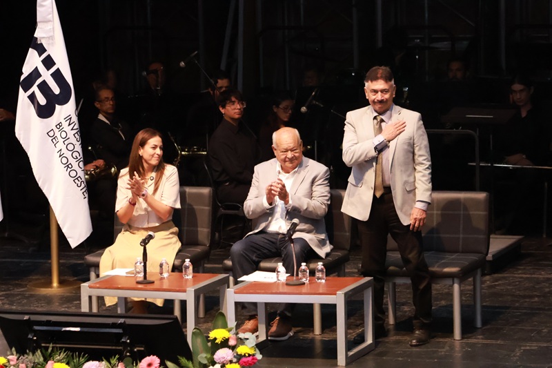 Durante la ceremonia realizada en el Teatro de la Ciudad, el mandatario subrayó que el CIBNOR ha sido un referente en la generación de conocimiento y en la aplicación de la ciencia para el bienestar de las y los sudcalifornianos. Llamó a su comunidad científica a mantener el compromiso de aplicar la investigación en beneficio del desarrollo del estado y del país.
