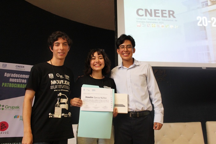 La estudiante Jocelin García Núñez, del noveno semestre de la Licenciatura en Ingeniería en Fuentes de Energías Renovables de la Universidad Autónoma de Baja California Sur (UABCS), obtuvo el primer lugar nacional en la modalidad de ponencia oral nivel licenciatura dentro del Congreso Nacional de Estudiantes de Energías Renovables (CNEER 2025), organizado por la Universidad Nacional Autónoma de México (UNAM).
