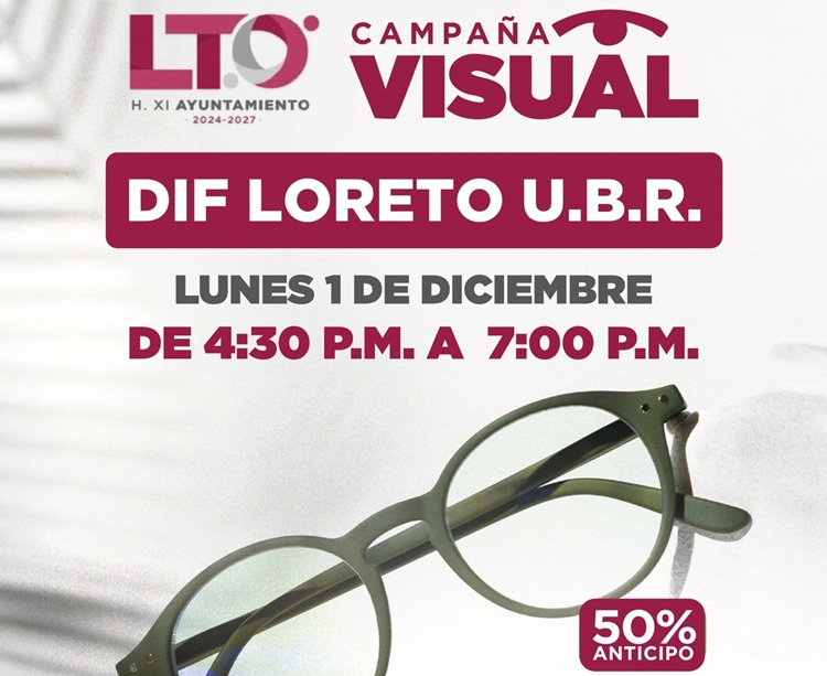 El SMDIF invita a la ciudadanía a acudir a esta jornada de salud visual, reforzando el compromiso del gobierno municipal de Loreto con el bienestar y la atención de las familias más necesitadas.