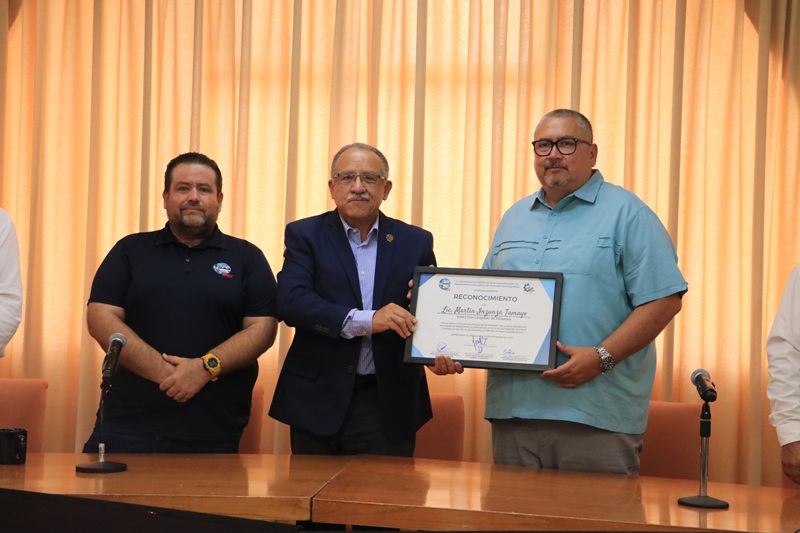 El reconocimiento fue entregado por el rector de la UABCS, Dr. Dante Salgado González, al director general del FONMAR, Lic. Martín Inzunza Tamayo, quien asistió acompañado de su equipo de trabajo.
