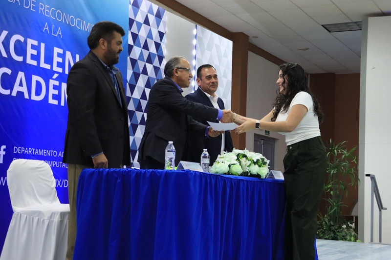El rector de la Universidad Autónoma de Baja California Sur (UABCS), Dr. Dante Salgado González, encabezó la entrega de reconocimientos a las y los estudiantes con los mejores promedios del Departamento Académico de Sistemas Computacionales (DASC), en una ceremonia oficial que tuvo por sede al Poliforo Cultural Universitario.
