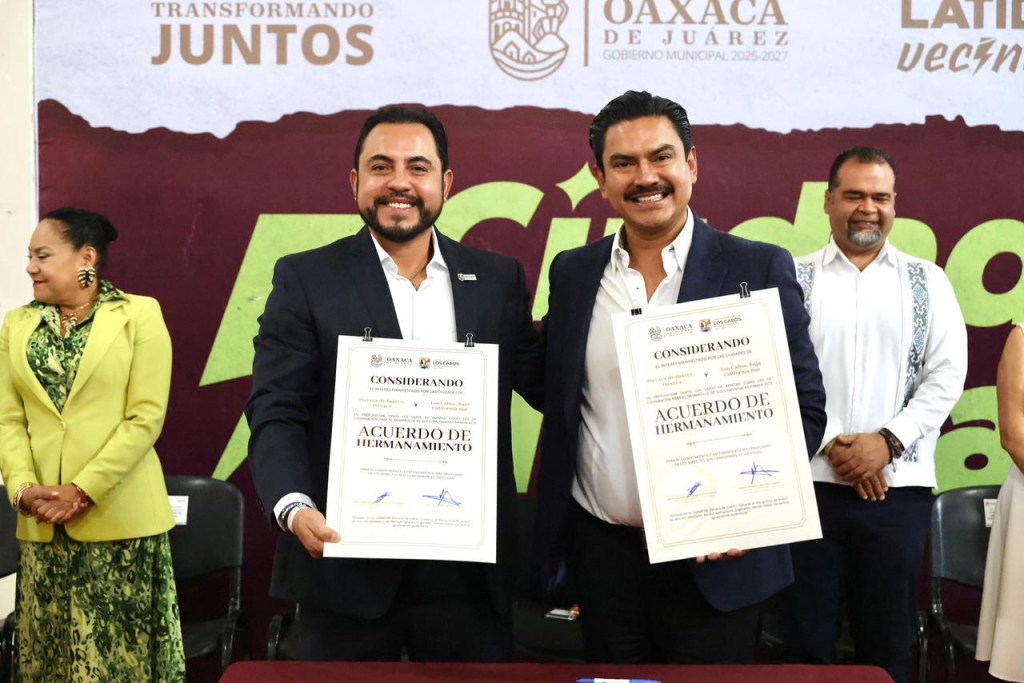 Los Cabos y Oaxaca de Juárez han quedado formalmente hermanados, lo que representará mayores oportunidades para las comunidades de ambos municipios, fortalecimiento de lazos, intercambio de experiencias en tema turístico, gastronómico y enriquecimiento cultural; el evento estuvo encabezado por los presidentes municipales, Christian Agúndez Gómez y Raymundo Chagoya Villanueva.