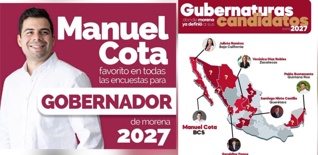 La imagen señala a Manuel Cota Cárdenas como el candidato definido por Morena para la candidatura a la gubernatura en Baja California Sur. Nada más falso.