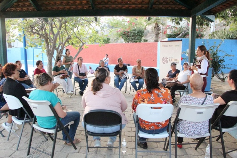 En este marco, se llevó a cabo una jornada informativa y una asamblea de mujeres en el municipio de Los Cabos, en la colonia Lomas del Faro, teniendo como sede el parque Luis Bulnes, donde habitantes de la comunidad participaron en un espacio de diálogo y expresión de inquietudes.