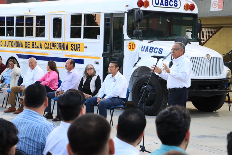 La Universidad Autónoma de Baja California Sur (UABCS) recibió este miércoles 12 de febrero un importante apoyo por parte del Gobierno del Estado, consistente en la entrega de diversas unidades móviles destinadas a fortalecer la movilidad estudiantil, las prácticas académicas y las actividades productivas de la institución.