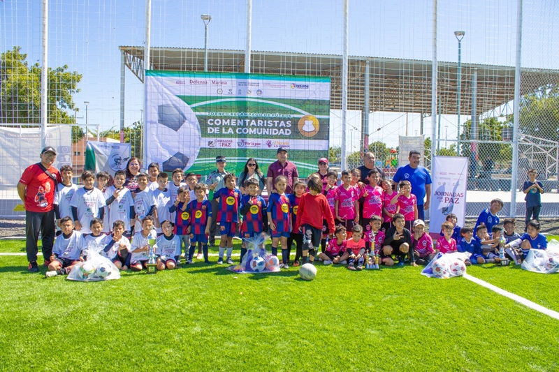 La mañana de este sábado 14 de febrero en el parque de la colonia Miramar de La Paz se realizó el torneo de fútbol infantil “Comentaristas de la Comunidad”, organizado por la Procuraduría General de Justicia del Estado (PGJE), a través de la Dirección de Prevención del Delito y Servicio a la Comunidad y el Instituto Sudcaliforniano del Deporte (INSUDE) en el marco de las estrategias del programa “Jornadas por la Paz”.