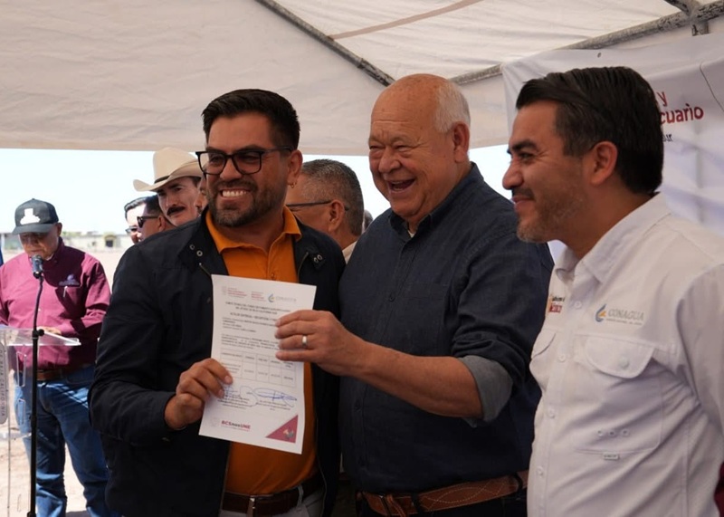 En gira de trabajo por el municipio de Comondú, el gobernador Víctor Manuel Castro Cosío, acompañado de Efraín Morales López, director general de la Comisión Nacional del Agua (CONAGUA), entregó 16 finiquitos de obras para unidades y distritos de riego, con una inversión de 20.4 millones de pesos en beneficio de 84 productores agrícolas.