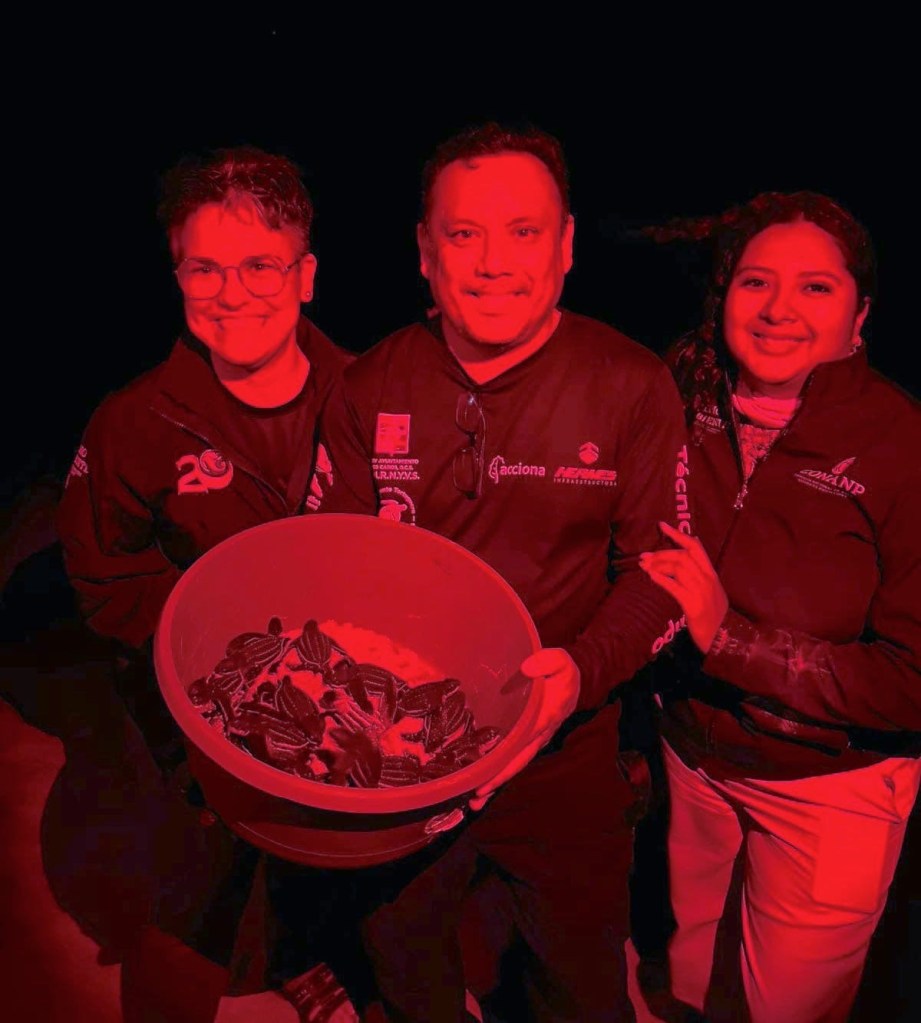 Como parte del protocolo, se empleó luz roja durante la liberación, ya que esta tiene una longitud de onda larga que las tortugas marinas apenas perciben, evitando desorientarlas. A diferencia de la luz blanca o azul, la luz roja no interfiere con su instinto natural de dirigirse hacia el mar, lo que incrementa sus posibilidades de supervivencia.