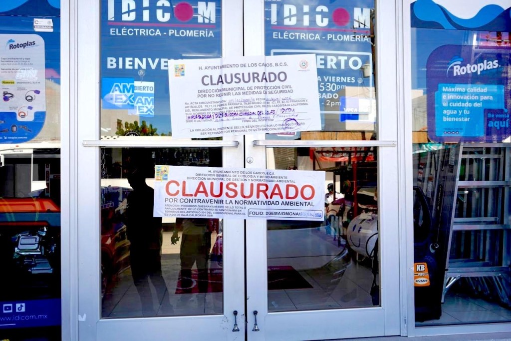 Autoridades del XV Ayuntamiento de Los Cabos realizaron la clausura de un establecimiento en Cabo San Lucas, tras detectar diversas irregularidades durante un operativo derivado de una denuncia ciudadana por la disposición ilegal de escombros en una zona rural.