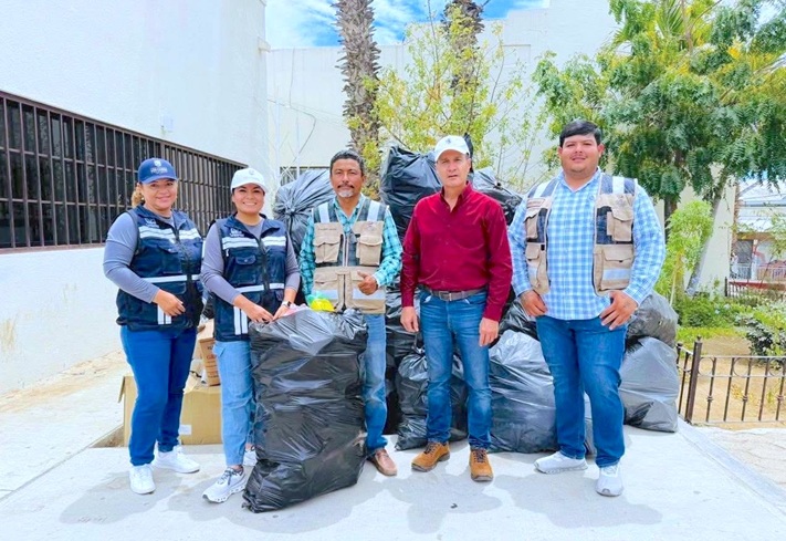 Asimismo, la delegada de Cabo San Lucas, Karina de la O Uribe acudió al lugar junto a su equipo de trabajo para entregar material PET recolectado previamente en colonias, como parte de las acciones de coordinación en materia ambiental.