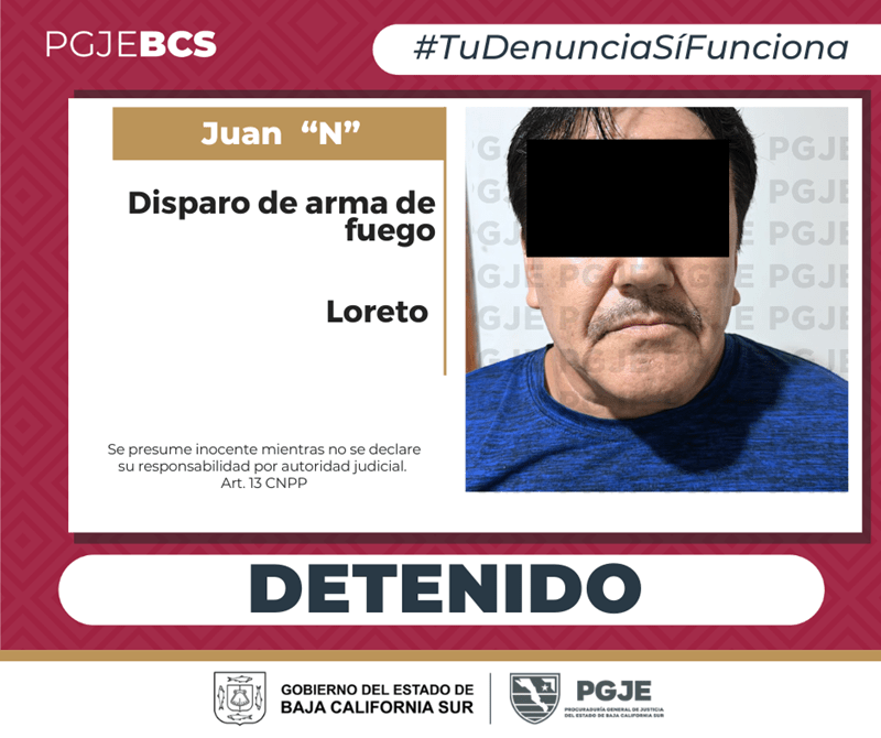 La Procuraduría General de Justicia del Estado (PGJE) de Baja California Sur informa que inició carpeta de investigación por disparos de arma de fuego, derivado de hechos reportados este jueves 16 de abril, en la ciudad de Loreto.